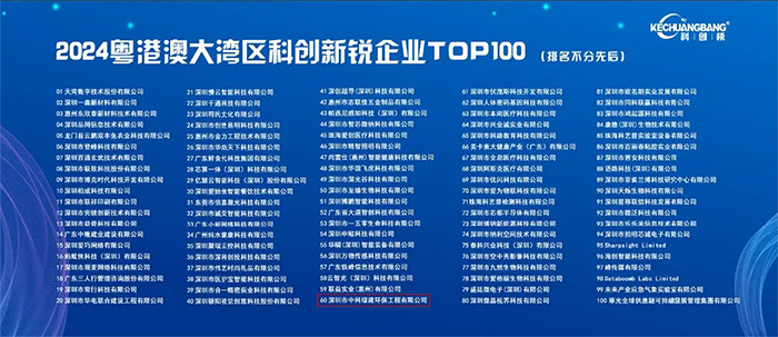 溫馨提示:如需了解更多詳情可點擊文末閱讀原文跳轉至2024粵港澳大灣區科創榜重磅發布,恭喜中科綠建環保成功入選新銳企業TOP100榜單閱覽