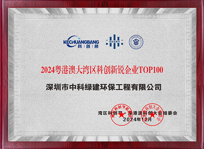 2024粵港澳大灣區科創榜重磅發布,恭喜中科綠建環保成功入選新銳企業TOP100榜單